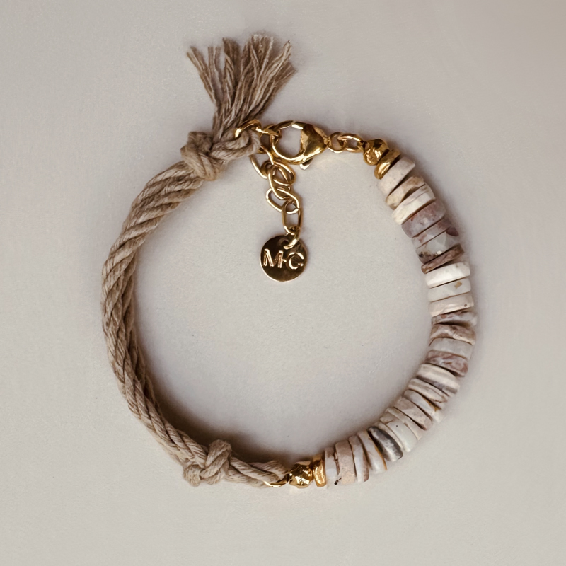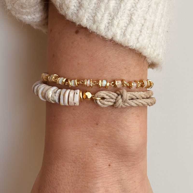 Bracelet in cotton rope and Australian Opals, finished in 24-carat, 1 micron fine gold.