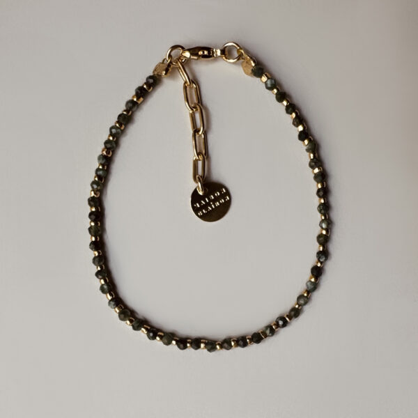 Bracelet with mini green Seraphinite beads and 24-carat, 1-micron gold-plated beads.