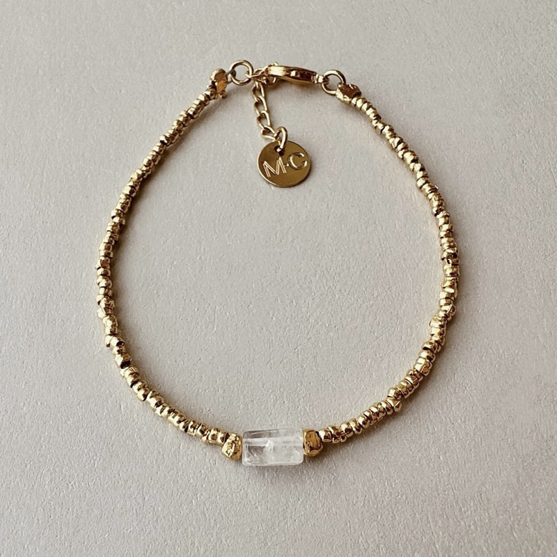 Bracelet adorned with a stone and pearls and finished in 24-carat, 1-micron fine gold.