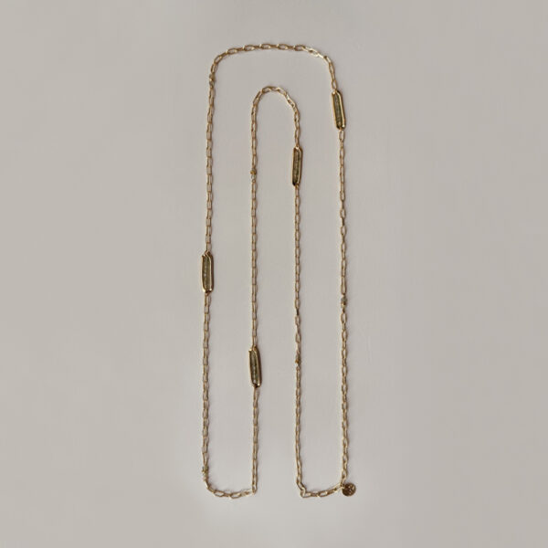 Long necklace made of a 1 micron, 24-carat gold-plated chain adorned with green Apatite beads.