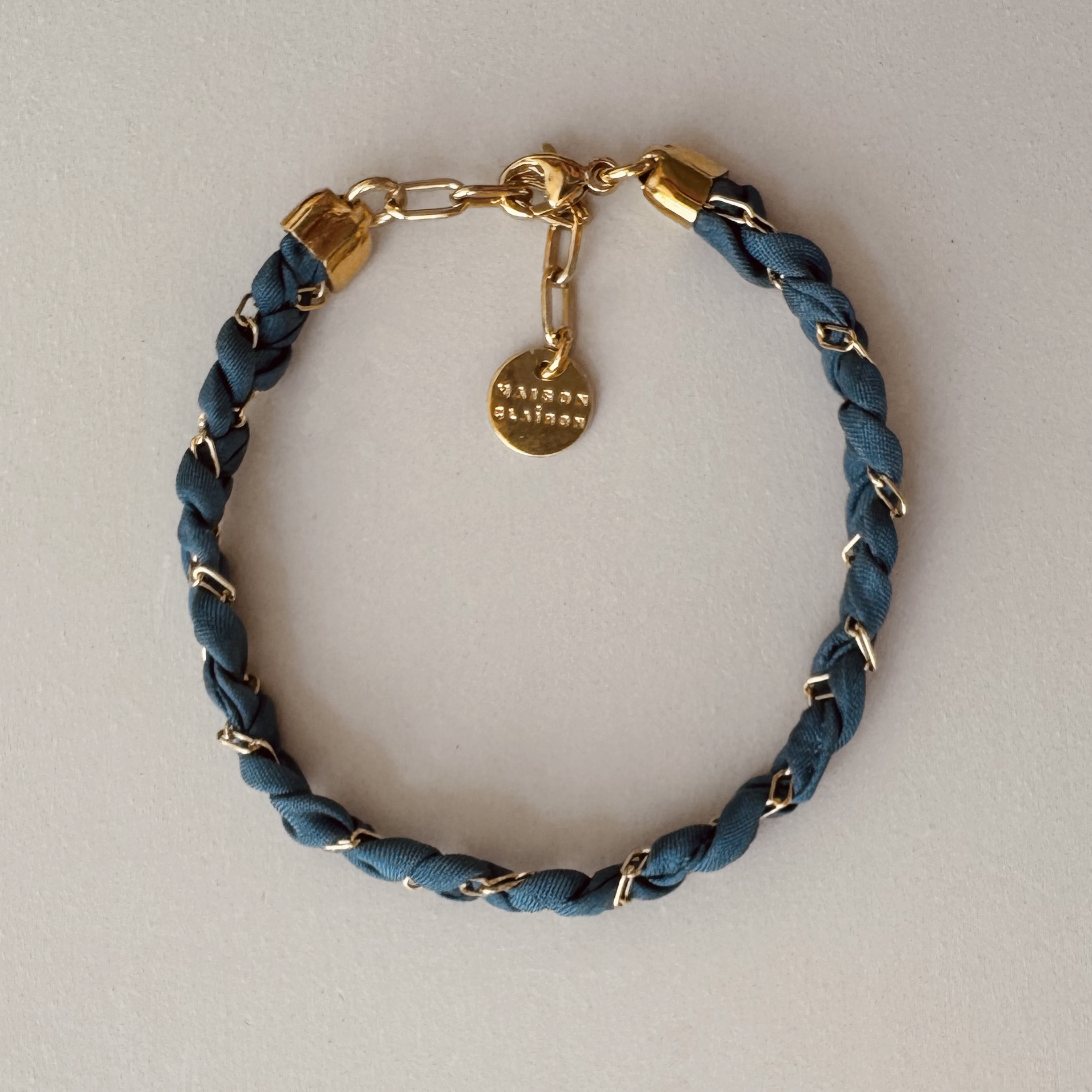 Bracelet made of silk ribbon and fine chains gilded with 24-carat, 1 micron fine gold.