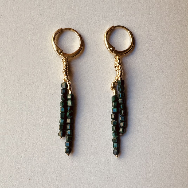 Boucles d’oreilles en Pierres naturelles, finitions dorées à l’or fin 24 carats, 1 micron.
