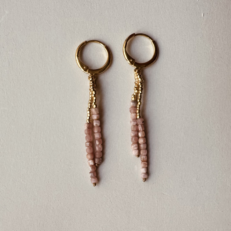 Boucles d’oreilles en Pierres naturelles de rodochrosite, finitions dorées à l’or fin 24 carats, 1 micron.