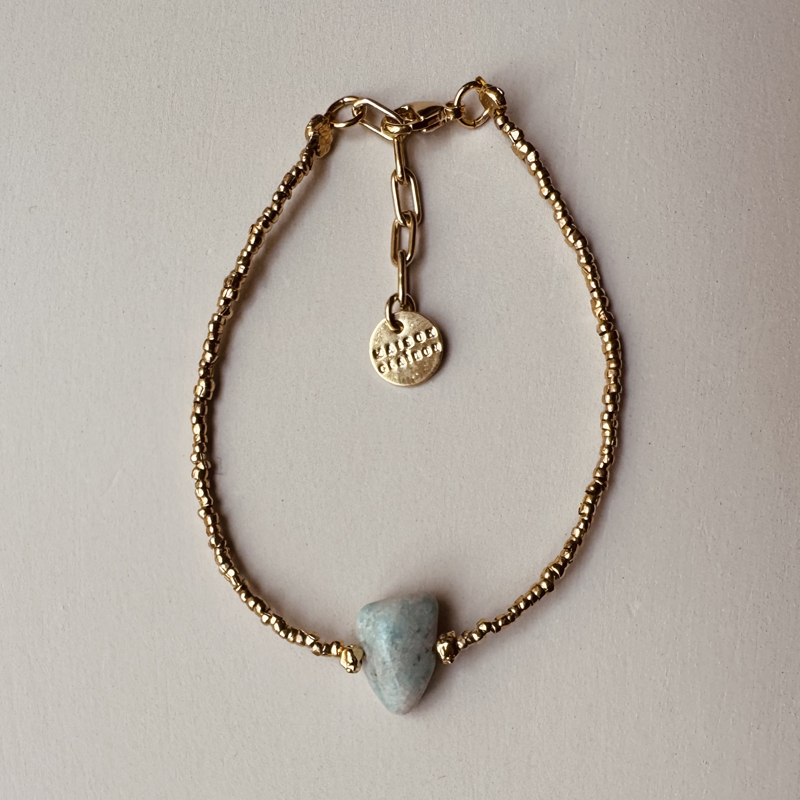 Bracelet orné d’une pierre et perles et finitions dorées à l’or fin 24 carats, 1 micron.