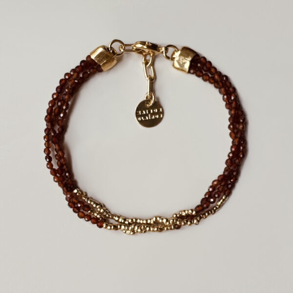 Bracelet 3 rangs en mini perles naturelles et perles dorées à l’or fin 24 carats, 1 micron.