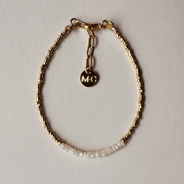 Bracelet en Pierres naturelles d’Opales d’Éthiopie et perles dorées à l’or fin 24 carats, 1 micron.