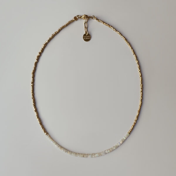 Collier en Pierres naturelles d’Opales d’Éthiopie et perles dorées à l’or fin 24 carats, 1 micron.